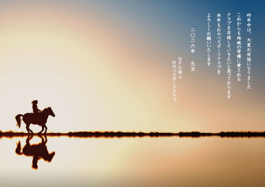2026年1月1日 / 最終更新日時 : 2025年12月27日 NPO-oyabe-sc-680588 ご案内 2026新年挨拶 新春のお慶びを申し上げます。 昨年中は、大変お世話になりましてありがとうございました。 これからも地域の皆様に愛されるクラブを目指していきたいと思っております。 本年も“おやべスポーツクラブ”をよろしくお願い致します。